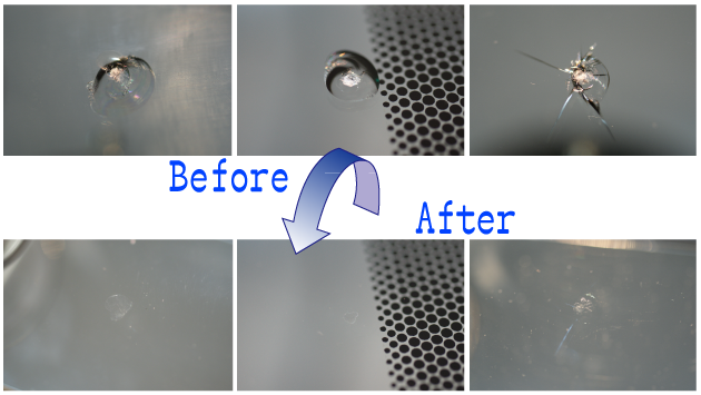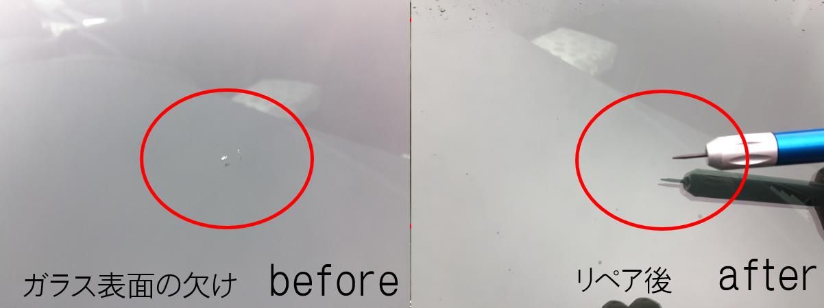 ※修復後の僅かな跡も気になる方はウインドリペアより新品ガラスに交換する事をオススメします。